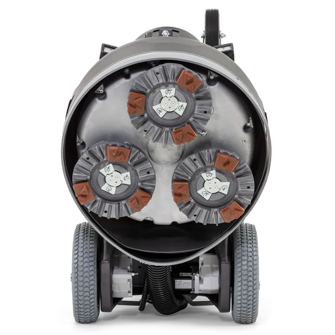 Su sistema planetario de doble accionamiento (Dual Drive Technology) permite un control independiente del plato principal y los discos planetarios, logrando una presión homogénea sobre toda la superficie. Con un ancho de trabajo de 530 mm, compuesto por tres platos planetarios giratorios, la Pulidora y lijadora Husqvarna PG6-DR combina potencia, equilibrio y precisión, alcanzando una productividad media de entre 60 y 100 m²/h, según el tipo de superficie y el grado de pulido requerido.